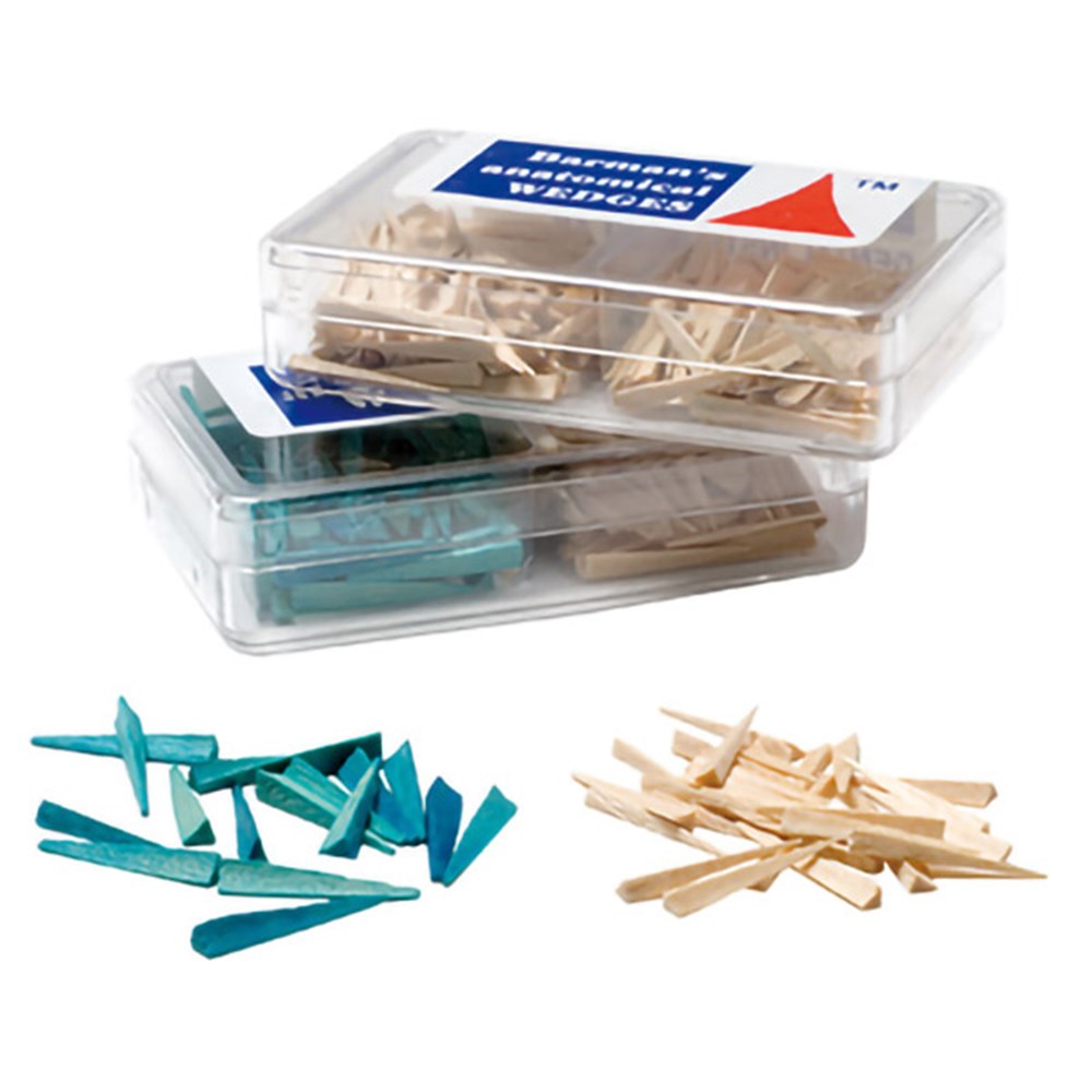 Barmans Easy Grip Wedge's special design provides firm holding and easy, safe insertion. The rounded base of the tip provides smooth insertion between teeth. The shaped sides conform to interdental space to provide optimal and uniformed lateral pressure on the matrix band. Made from birch wood which makes the wedge soft and pliable