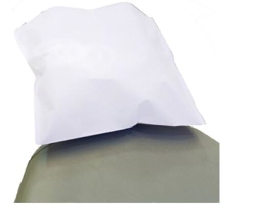 Tissue/poly headrest covers incorporate a moisture barrier layer of poly and a strong, soft tissue surface. 500/case