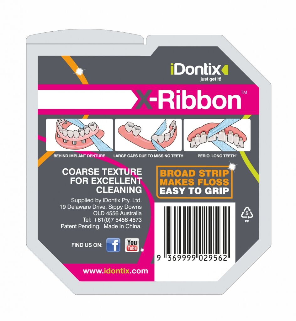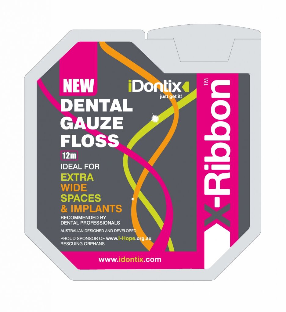X-Ribbon is a wide gauze floss ideal for flossing teeth next to extra wide spaces and implants.