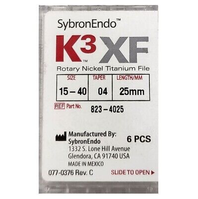 K3 XF Files Rotary Files NITI Taper 0.4" Size-15-40 Length-25mm #8234025