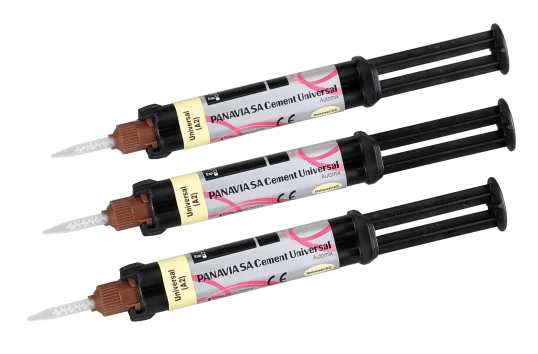 PANAVIA SA Cement Universal is a forerunner in self-adhesive resin cements containing the unique LCSi monomer that adheres to virtually every material including glass ceramics without the need for a separate primer. Using a unique silane coupling agent built into the paste - LCSi monomer - the cement delivers a strong, durable chemical bond to porcelain, lithium disilicate and composite resin. The original MDP monomer present in the paste too allows for chemical reactiveness with zirconia, dentin and enamel.