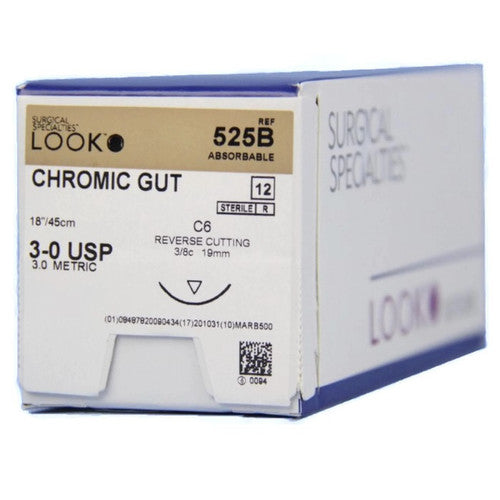Look Sutures Chromic Gut , 3-0, 18" Length, C6 Needle 12/Box #525B