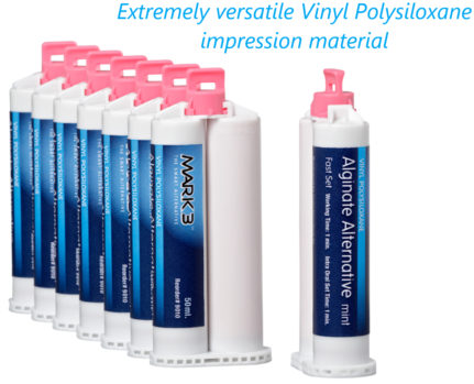 The Mark 3 Alginate alternative is used for dental impressions, orthodontic models, opposing models, removable retainers & splints, simple removable dentures, provisional crown & bridge.