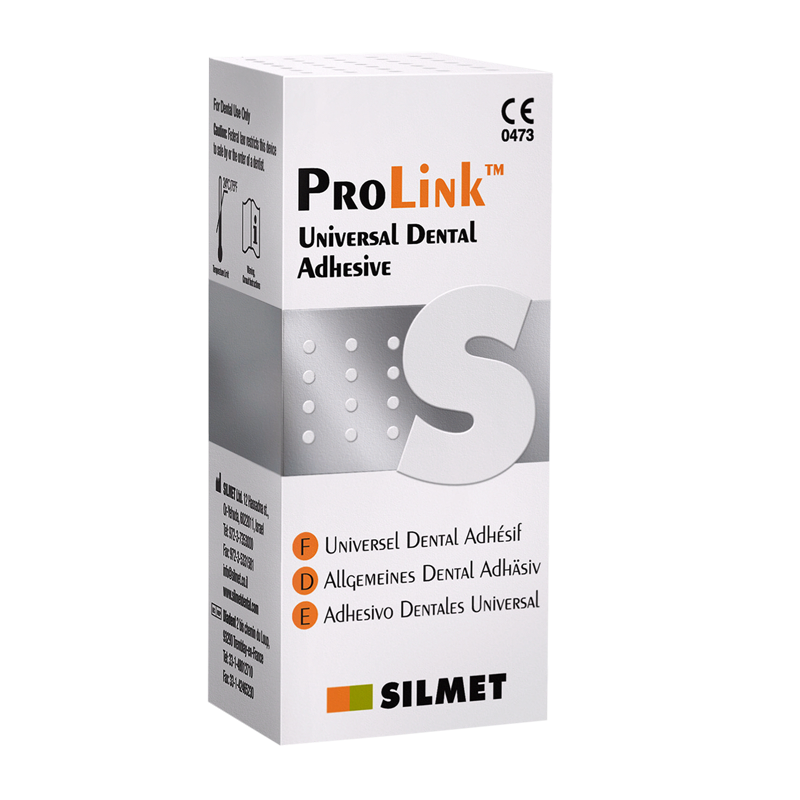 ProLink Universal Adhesive Bottle by Silmet is a single step bonding agent that delivers outstanding shear bonding values to dentin, enamel & all popular light, dual or auto-cure composites. ProLink utilizes advanced Colloidal Glass Technology to provide a first class dental adhesive. Direct composite or compomer restorations, adhesive cementation, composite repair