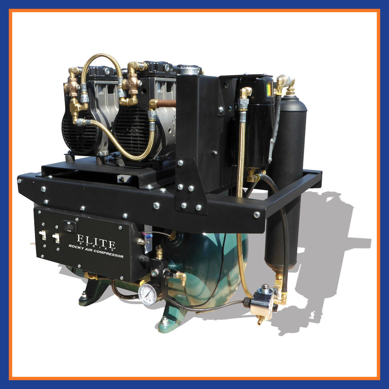 The Tech West Rocky Series Oilless Air Compressors provide 100% oil free air to the dental office. With our high performance air drying system, we guarantee the clean dry air you expect. The design of the Tech West Rocky Series Air Compressor provides smooth, quiet, vibration free operation at only 65 dB-a noise level. We offer them in a twin configuration to meet most any need of today’s Dental Practice. Tech West will provide full plumbing and electrical design upon request